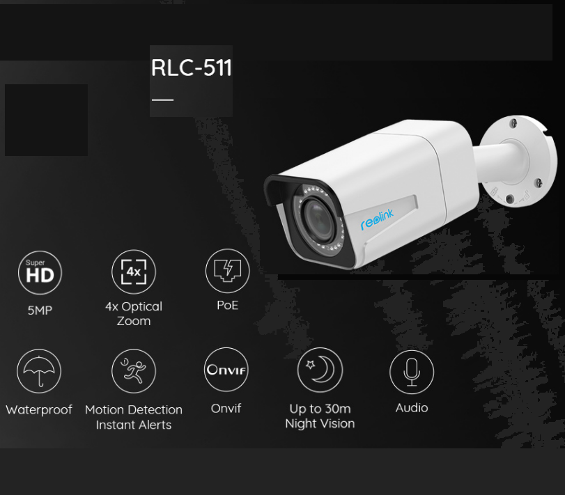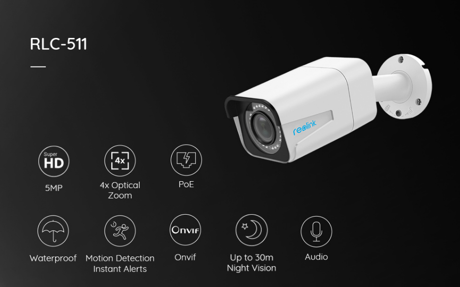 - Reolink RLC-511-Camera IP PoE para exterior com resolução de 5MP(2560x1920). Zoom óptico 4X, com excelente visão de dia e de noite. Câmera de vigilancia à prova de água.