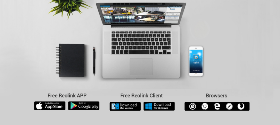 - Visualização remota, a qualquer hora, a partir de qualquer lugar. Aceda remotamente à câmera IP para ver a visualização ao vivo e gravações através do aplicativo reolink gratuito em seu dispositivo móvel, cliente reolink livre em seu computador, navegadores da web (ie, Google Chrome, Microsoft Edge, Safari, Firefox, etc.).