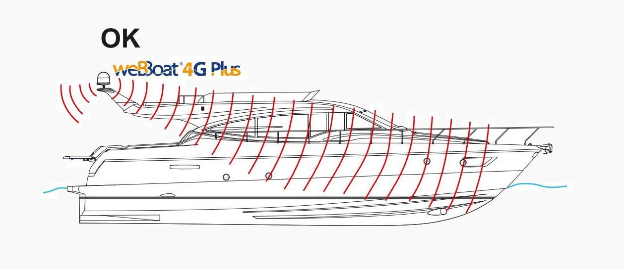 - O weBBoat 4G PLUS é equipado com 2 antenas 4G MIMO, que recebem o sinal da Internet e cria uma rede WiFi pessoal e segura dentro do barco de fibra de vidro, que pode ser usada simultaneamente por 32 dispositivos diferentes e autorizados.