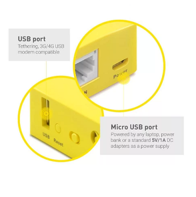 Interfaces 1 WAN, 1 LAN, 1 USB2.0, 1 microUSB(PWR), 1 reset